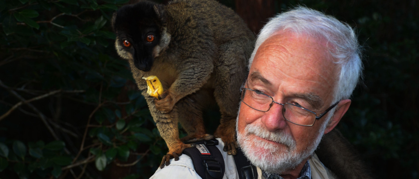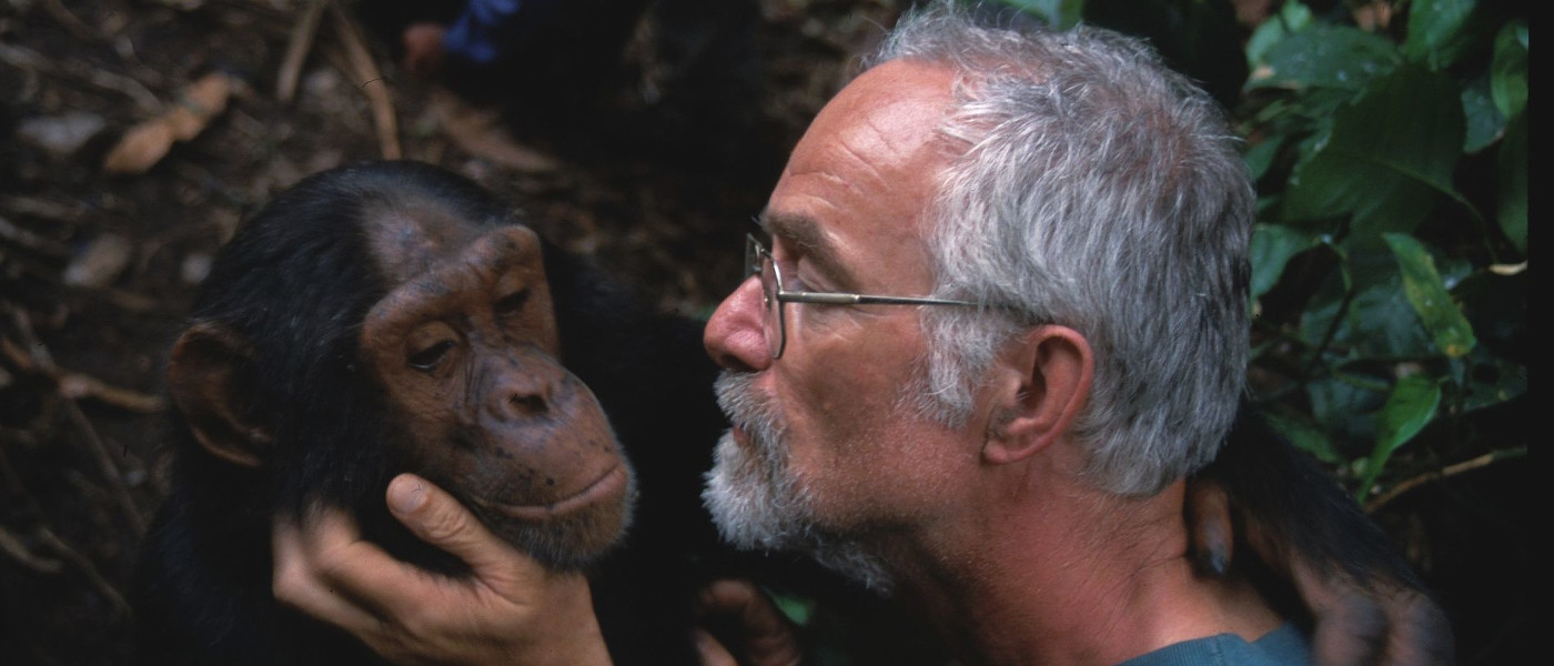 wo sich ein junger Schimpanse gerne von ihm tragen ließ.